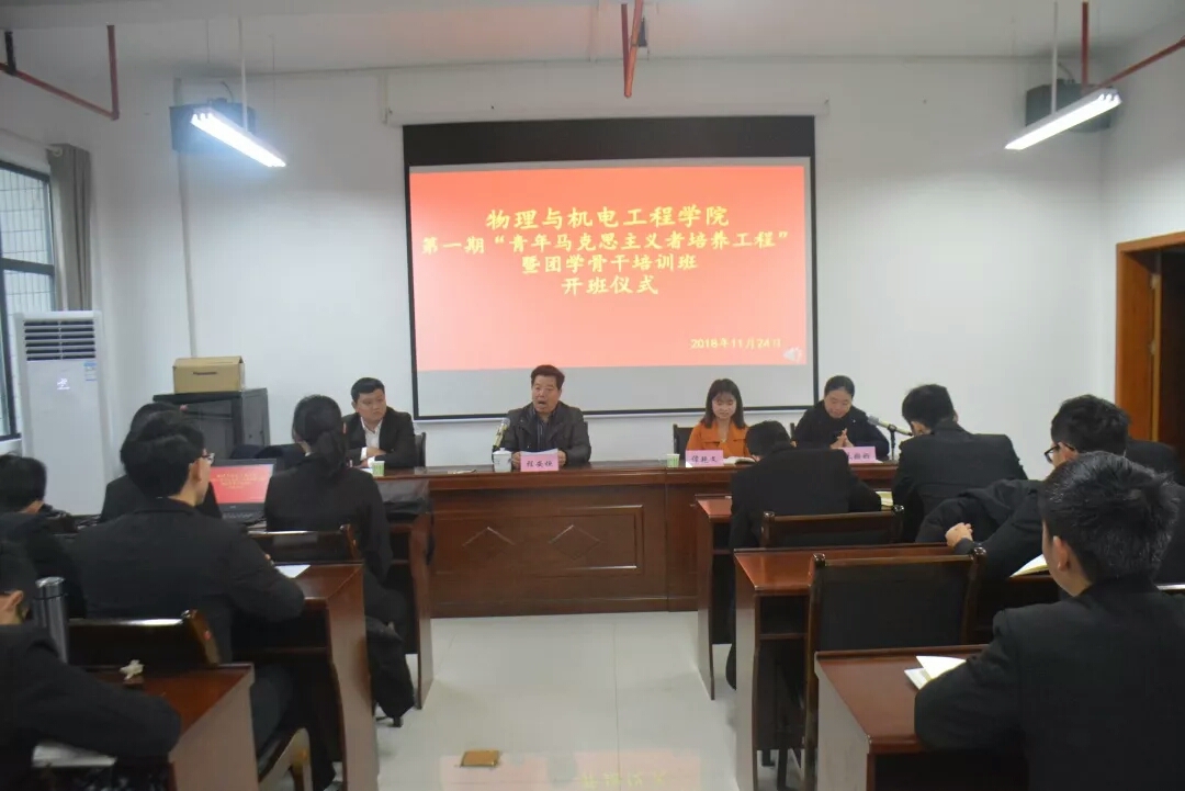 (通讯员:钱双双)11月24日上午8:30,英国上市官网365“青年马克思主义者培训工程”暨团学会骨干培训班开班仪式在工科大楼A416会议室正式举行。参加本次培训的人员有英国上市官网365党委副书记程安垣,学工办主任朱姗姗,团总支书记任志君,辅导员谭艳文及89名学生干部。